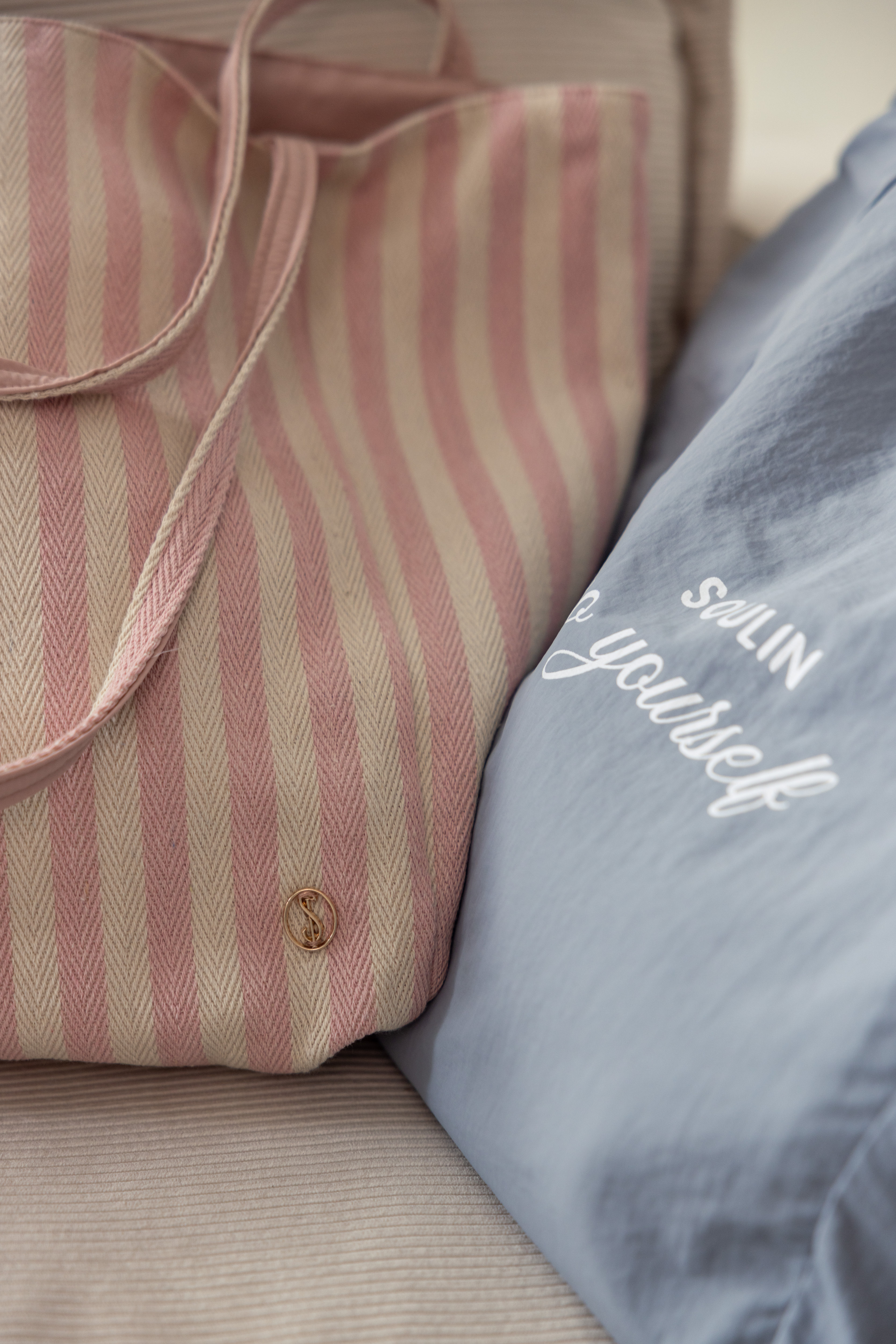 品牌雙面條紋尼龍包-粉
