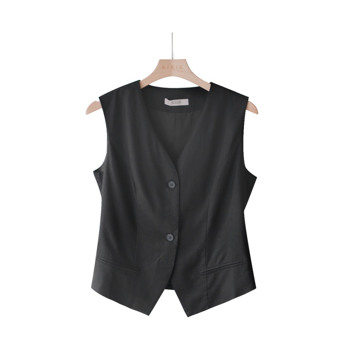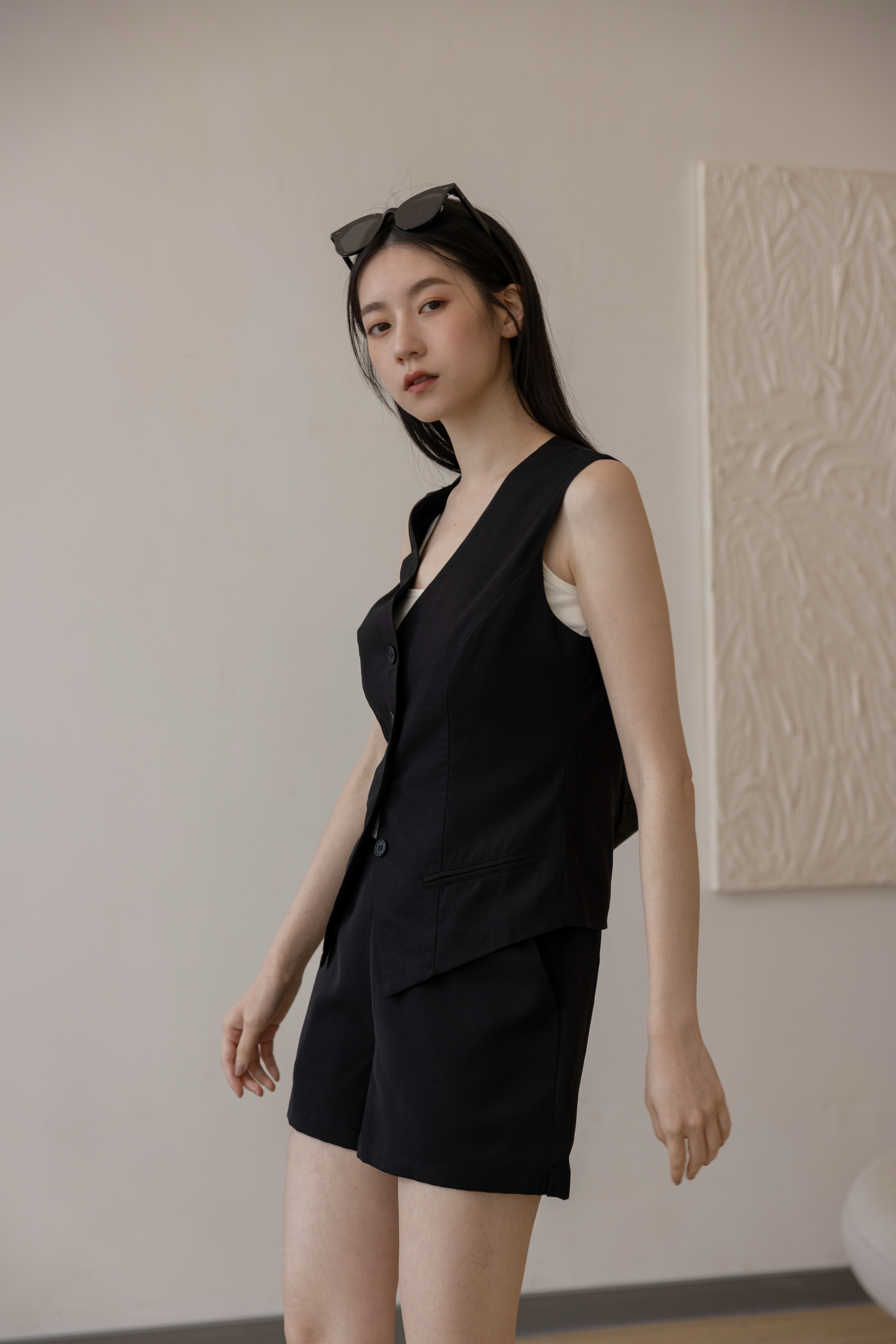 時髦棉麻西裝背心-黑