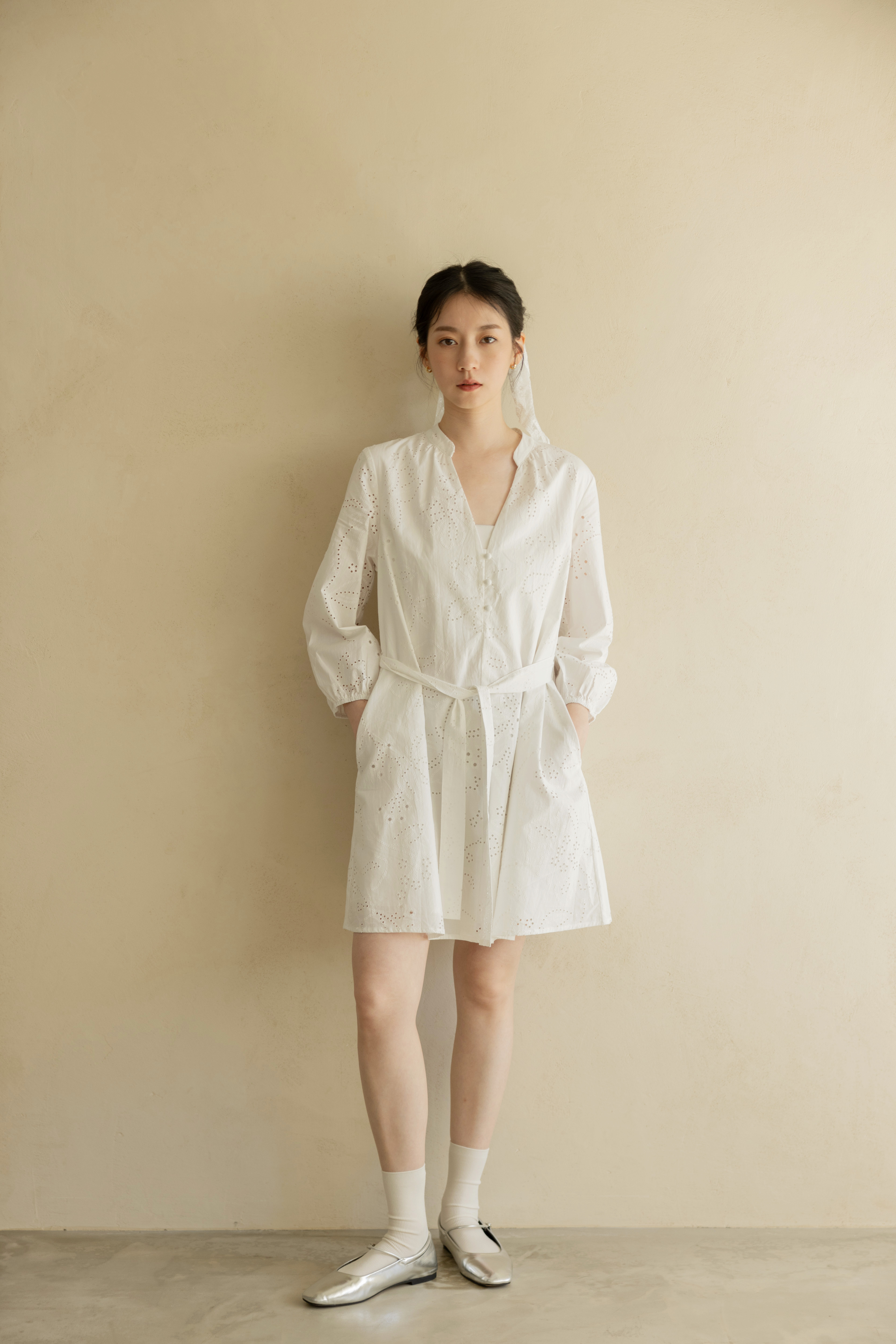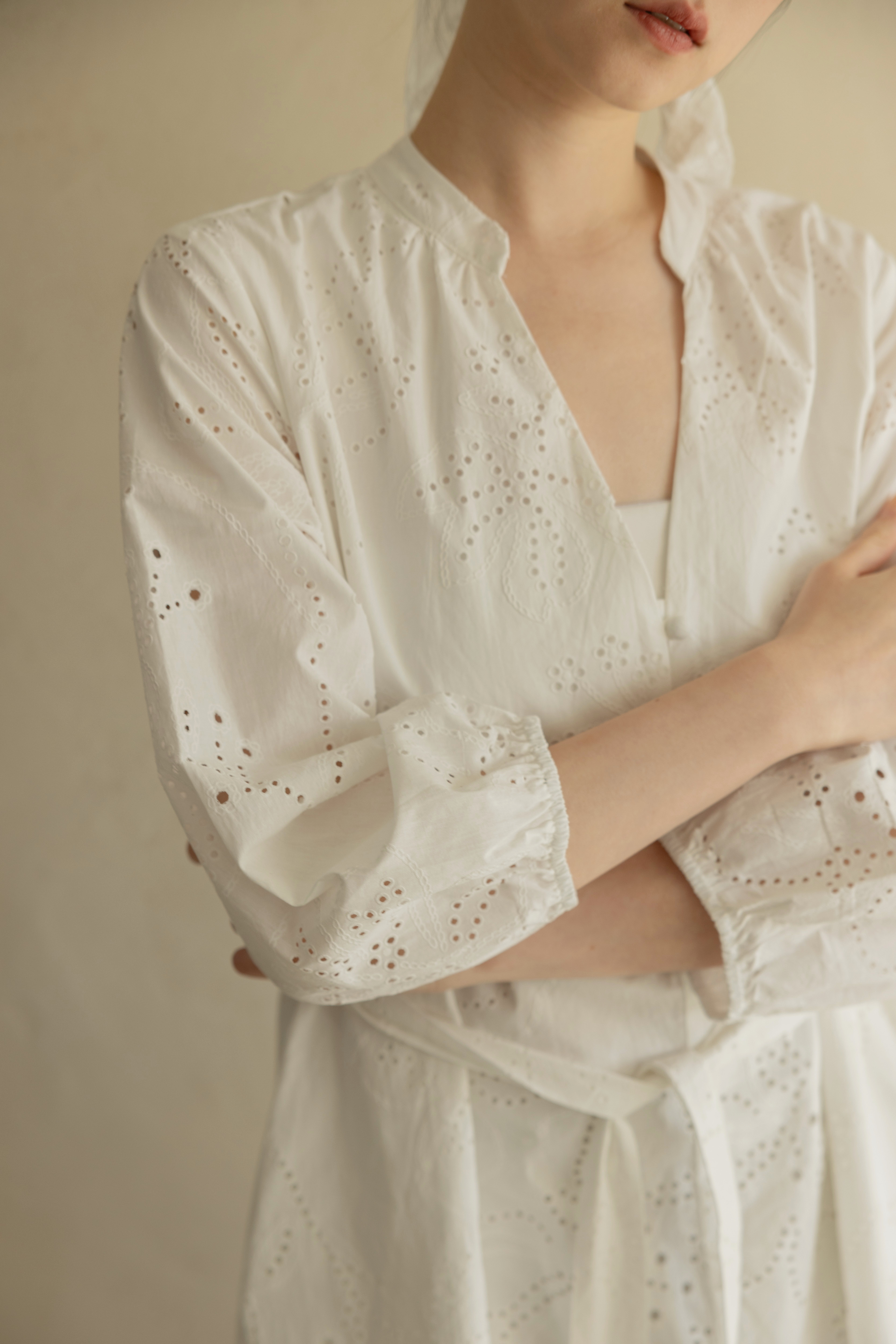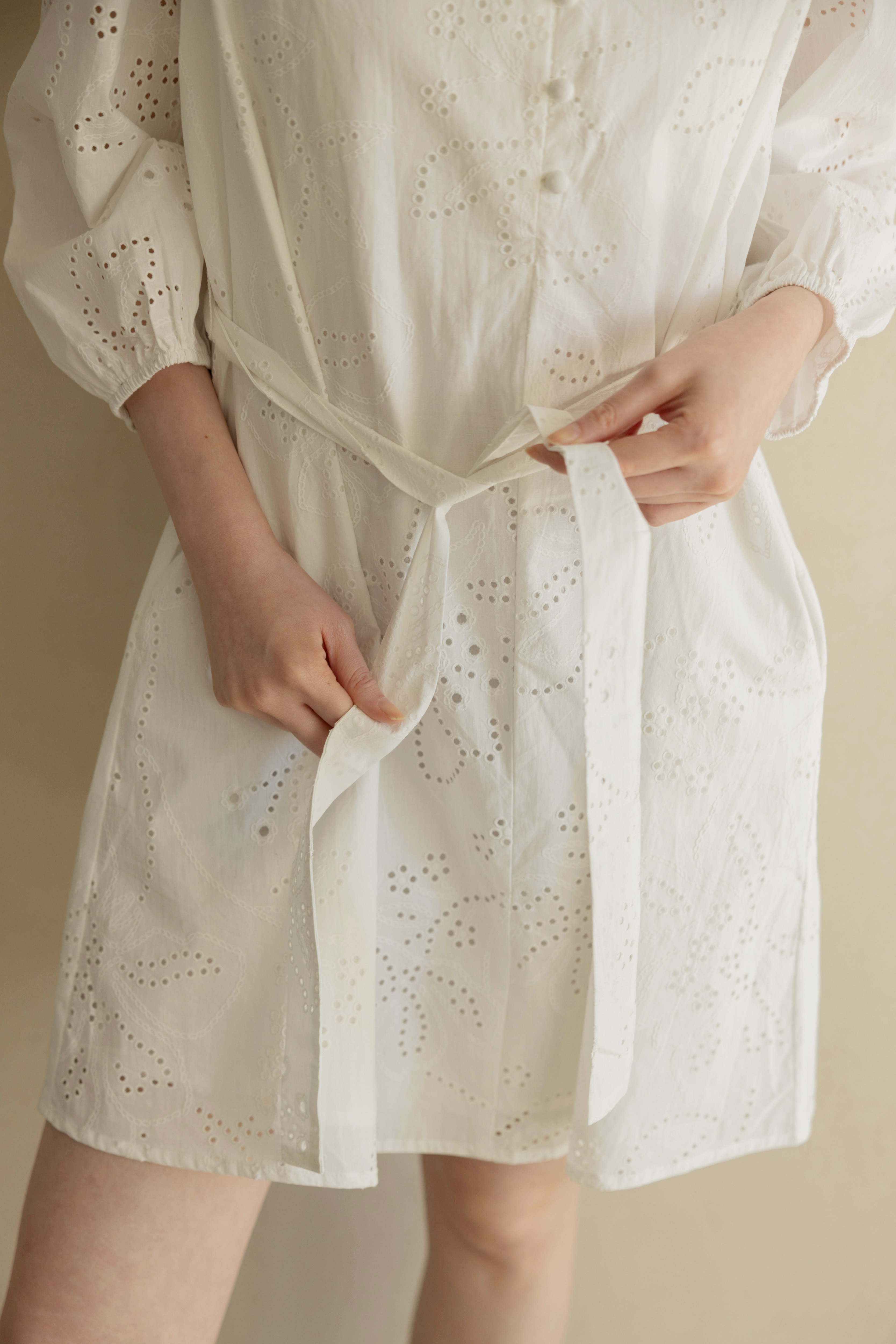法式浪漫緹花短洋(附綁帶)
