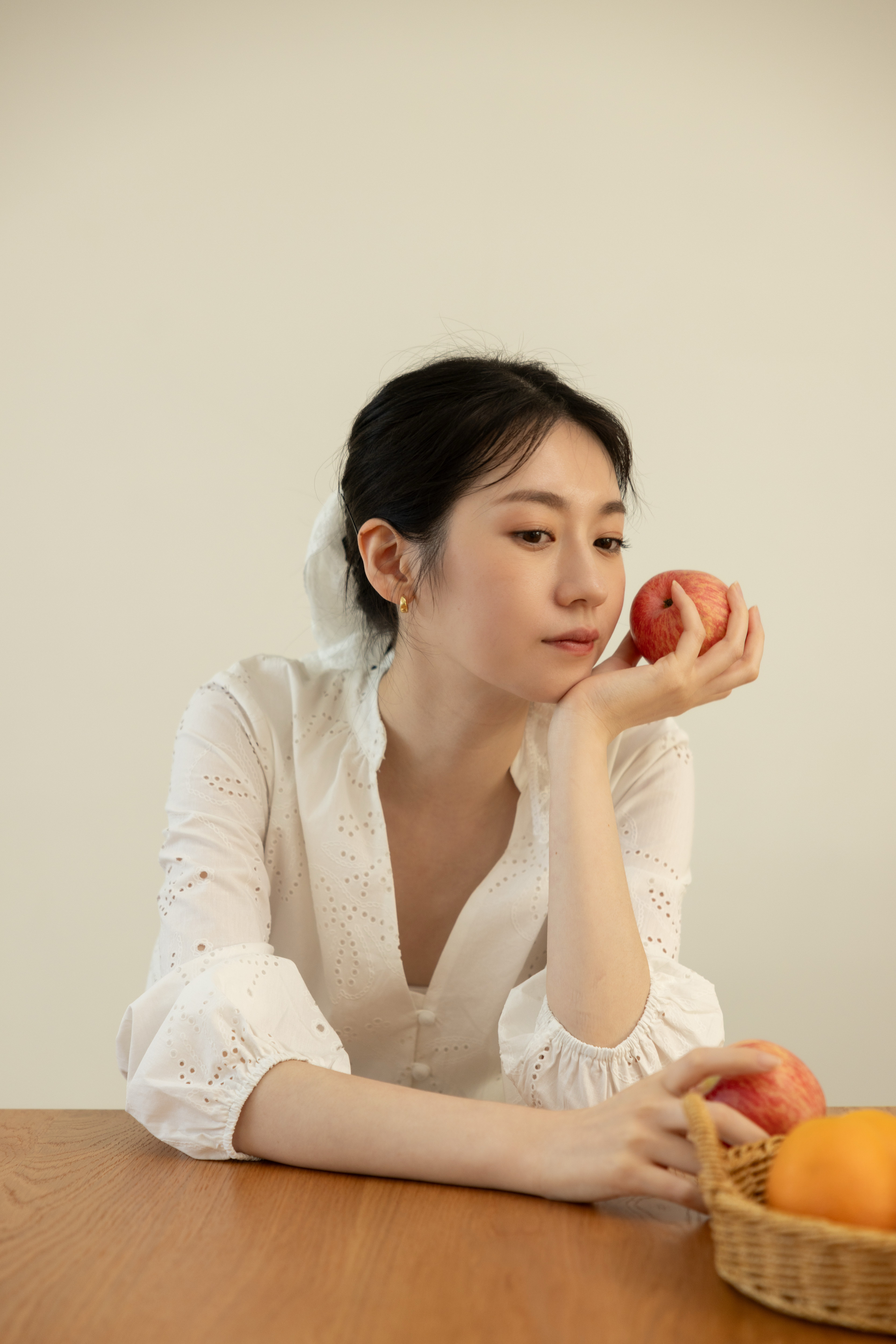 V領搭配三顆布包扣,修飾臉型更顯精緻